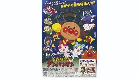 キャスト | アンパンマン:戸田恵子/ばいきんまん:中尾隆聖/ジャムおじさん:増岡弘/バタコ:佐久間レイ/チーズ:山寺宏一/ドキンちゃん:鶴ひろみ 他 【声のゲスト出演】キララ:スザンヌ/キラリ:マーガリン/クロワッサン王妃:キャサリン/こてつちゃん:藤井恒久(日本テレビアナウンサー)/ジャイアントだだんだん:原口あきまさ |