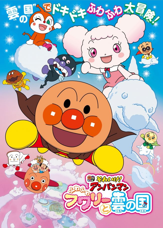 The scene is set in the "Land of Clouds," a place where everything is made of clouds! Precious "clouds" that keep flowers and plants healthy and create rain and rainbows come from this Land. The Land travels and sends clouds to various towns and stars. A baby cloud that was born there accidentally comes across Baikinman and his gang and is named "Flurry" by Dokinchan. As Flurry grows up healthy and strong, her bond with Dokinchan deepens. Meanwhile, trouble brews in the Land of Clouds as a strange stain prevents it from flying! Baikinman, who wants to become the king of the Land of Clouds invents "Baigumora," which goes on a rampage! The Land of Clouds and Anpanman World will be covered in black clouds, leading to great trouble! Will Anpanman and his friends be able to protect the Land of Clouds? What will happen to Flurry and Dokinchan's friendship?