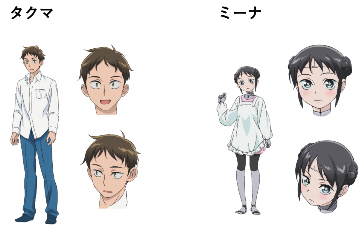 『五等分の花嫁』や『君の膵臓をたべたい』にて演出を手掛け、細やかな心情描写に定評のある吉村文宏が監督を務め、シリーズ構成を広田光毅(『彼女、お借りします』『新テニスの王子様』シリーズ構成ほか)、キャラクターデザインをウクレレ善似郎(『NARUTO』『可愛いだけじゃない式守さん』作画監督ほか)、アニメーション制作は手塚プロダクションが担当。『鉄腕アトム』『ブラック・ジャック』など、手塚作品で培ったSFを現実に落とし込むノウハウに加え、近年手がけている『安達としまむら』『五等分の花嫁』『カノジョも彼女』などで磨いたキャラを可愛く描くセンスを融合し、<感情がないはずなのに、なぜか可愛いヒロイン>を魅力的に描きます!タクマとロボットのミーナのキャラクター設定画も到着しました!