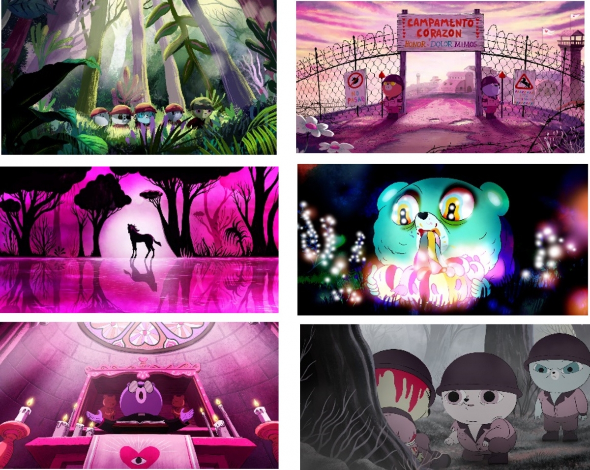 アルベルト・バスケス監督が生み出す、不気味さと可愛さを兼ね備えた作風が溢れ出ている本作は、『地獄の黙示録』x『バンビ』x『聖書』という企画コンセプトに、テディベアとユニコーンの最後の聖戦を、血しぶき、内臓、ドラッグ、BL、テディベアの下半身など“アブナイ表現”をたっぷり混ぜ込んで作り上げた、“究極の反戦アニメーション”。企画・制作期間に6年を要し250人以上の精鋭スタッフが、50体ものキャラクターと1,500もの背景によって作り上げた。2Dと3Dアニメーションが融合し、音楽を巧みに駆使して、シチュエーションやキャラクターとシンクロしながら、一貫性を保つ芸術的な作品に仕上がりました。『ユニコーン・ウォーズ』のキャラクターの可愛い見た目からは、一見子供向けアニメーションと思われがちですが、家族関係、宗教、環境、悪の起源、そして権力を支配する意味を語りながら、“分断がもたらす争い”がいかに無意味であるかを説く大人のためのダーク・ファンタジー作品です。