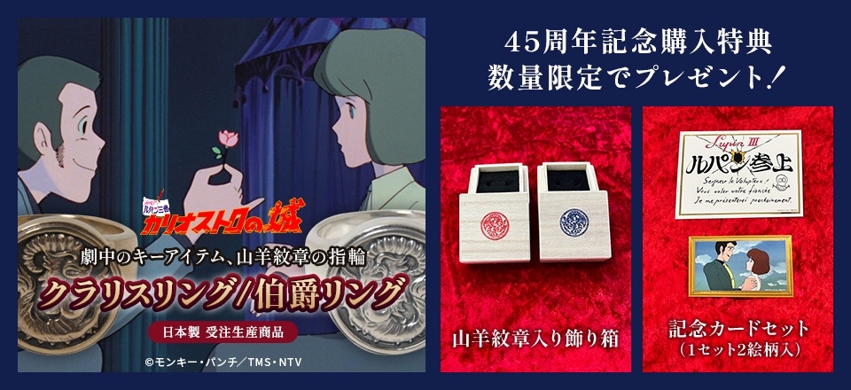 クラリスリング・伯爵リング 45周年記念購入特典<山羊紋章入り飾り箱><記念カードセット(2絵柄)>プレゼントキャンペーン実施!