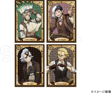石神千空、あさぎりゲン、Dr.ゼノ、スタンリー・スナイダーがスチームパンクな世界でバイクを整備したり一服したり……「ツーリング」中のふとした一瞬を切り取った描き下ろしキャラクターイラストの商品が登場!