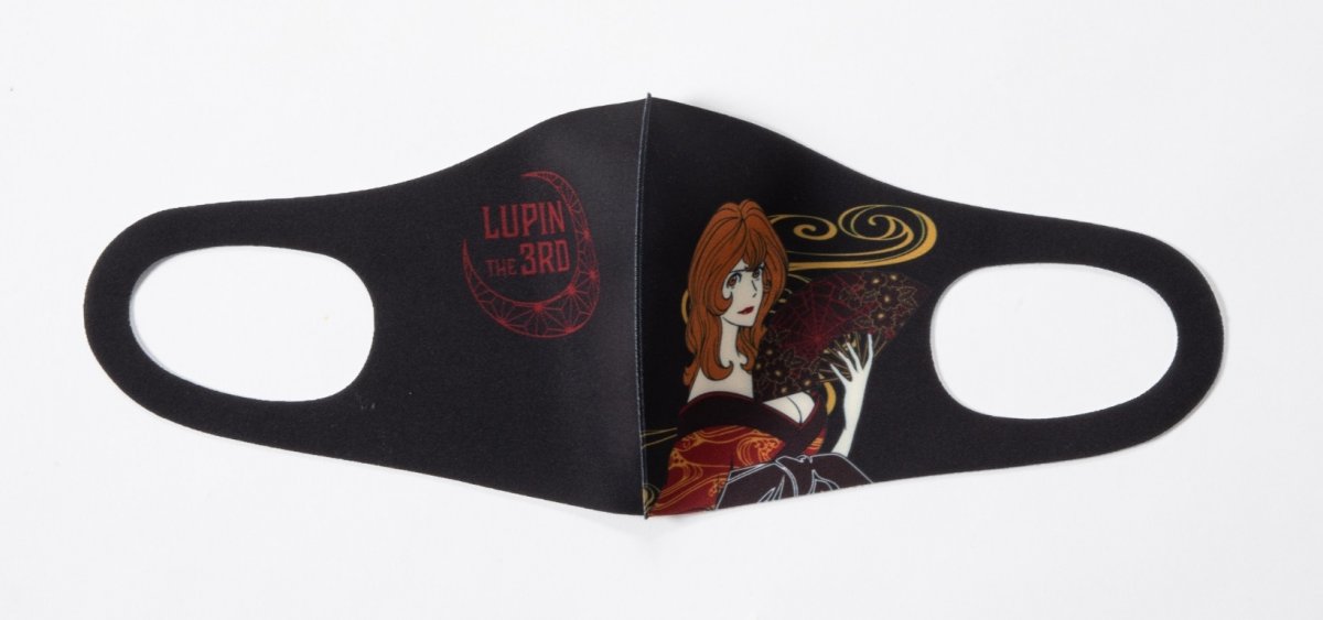 ルパン、次元、五ェ門がワンポイントにデザインしたマスクと艶のある不二子をデザインしたマスクをご用意。