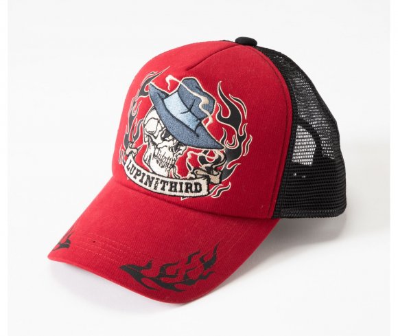 次元の帽子とスカルを刺繍で施し骨太さを表現。