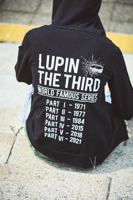 胸元にルパンのシルエットと「LUPIN THE THIRD」の文字を、背面には『ルパン三世』TVシリーズの歴史をデザインしました。
